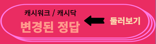 제가 공유하는 퀴즈 정답은 캐시워크 및 캐시닥입니다. 퀴즈 풀면 포인트가 적립되는데 어느 정도 모이면 음식등으로 교환이 가능합니다.