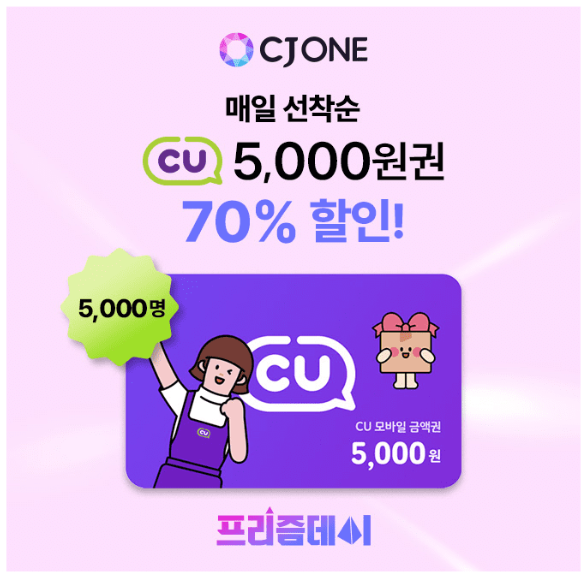 매일 오후 2시! 선착순으로 CU 70% OO OO 다운 받아가세요! OOOO에 들어갈 단어는?(ㅎㅇㅋㅍ)